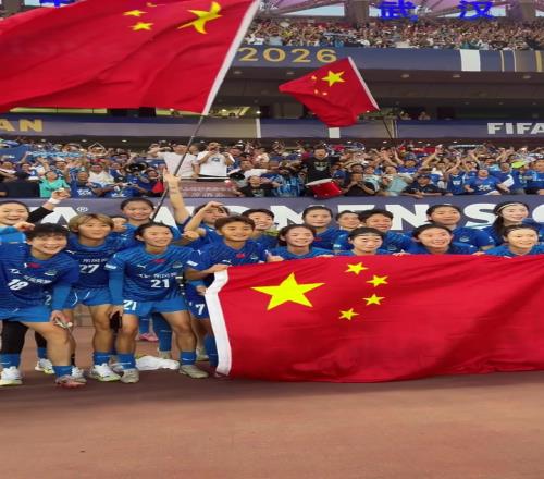 中国骄傲!武汉车谷江大女足赛后展示国旗拍摄大合照